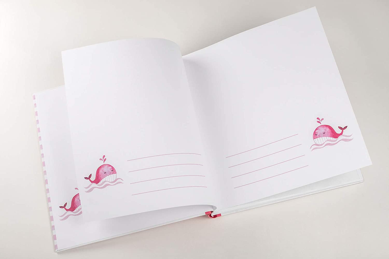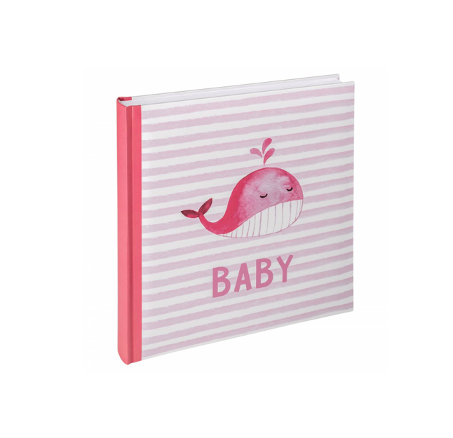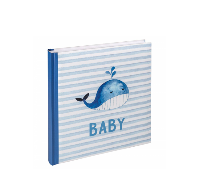 - Álbum para bebés encuadernado en un libro, acolchado, con cubierta de impresión artística laminada de alta calidad. El álbum en formato 28×30,5 cm tiene 50 páginas blancas de cartulina fotográfica libre de ácido con hojas protectoras de glassine blanco, una cabecera ilustrada de 4 páginas y está equipado con un CD y archivo de negativos.