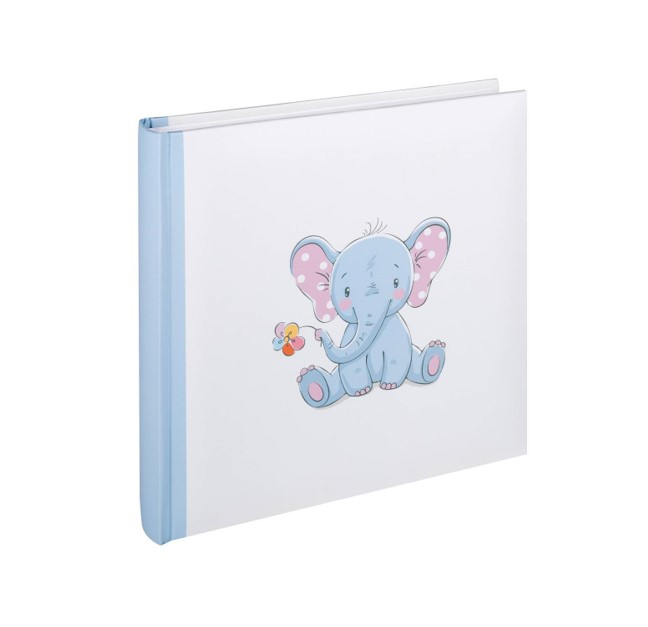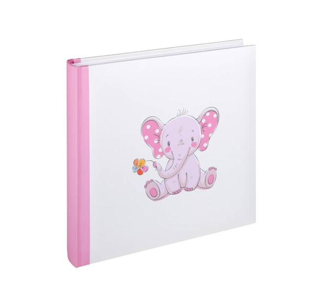 - Álbum de bebé rosa encuadernado en un libro con motivo de elefante con cubierta de impresión artística laminada de alta calidad. El álbum en formato 26×25 cm tiene 50 páginas blancas de cartulina fotográfica libre de ácido con hojas protectoras de glassine blanco, una cabecera ilustrada de 4 páginas y está equipado con un CD y archivo de negativos.