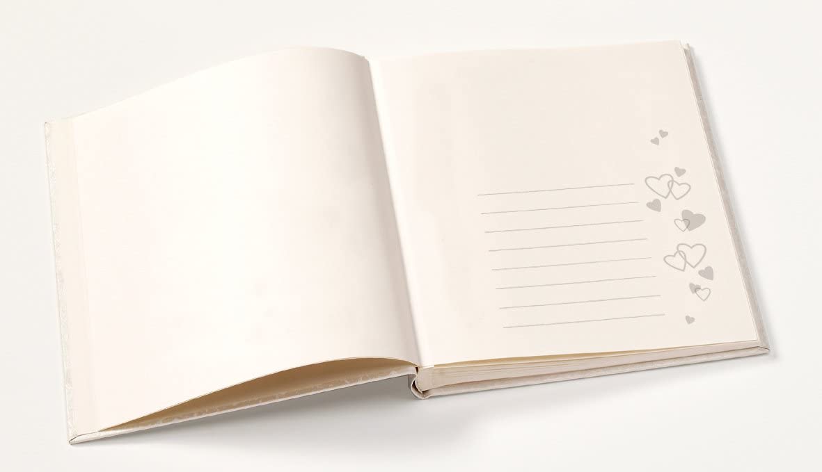 - Álbum de boda encuadernado en libro con tapa de alta calidad en aspecto damasco con filigrana plateada en relieve en forma de corazón.