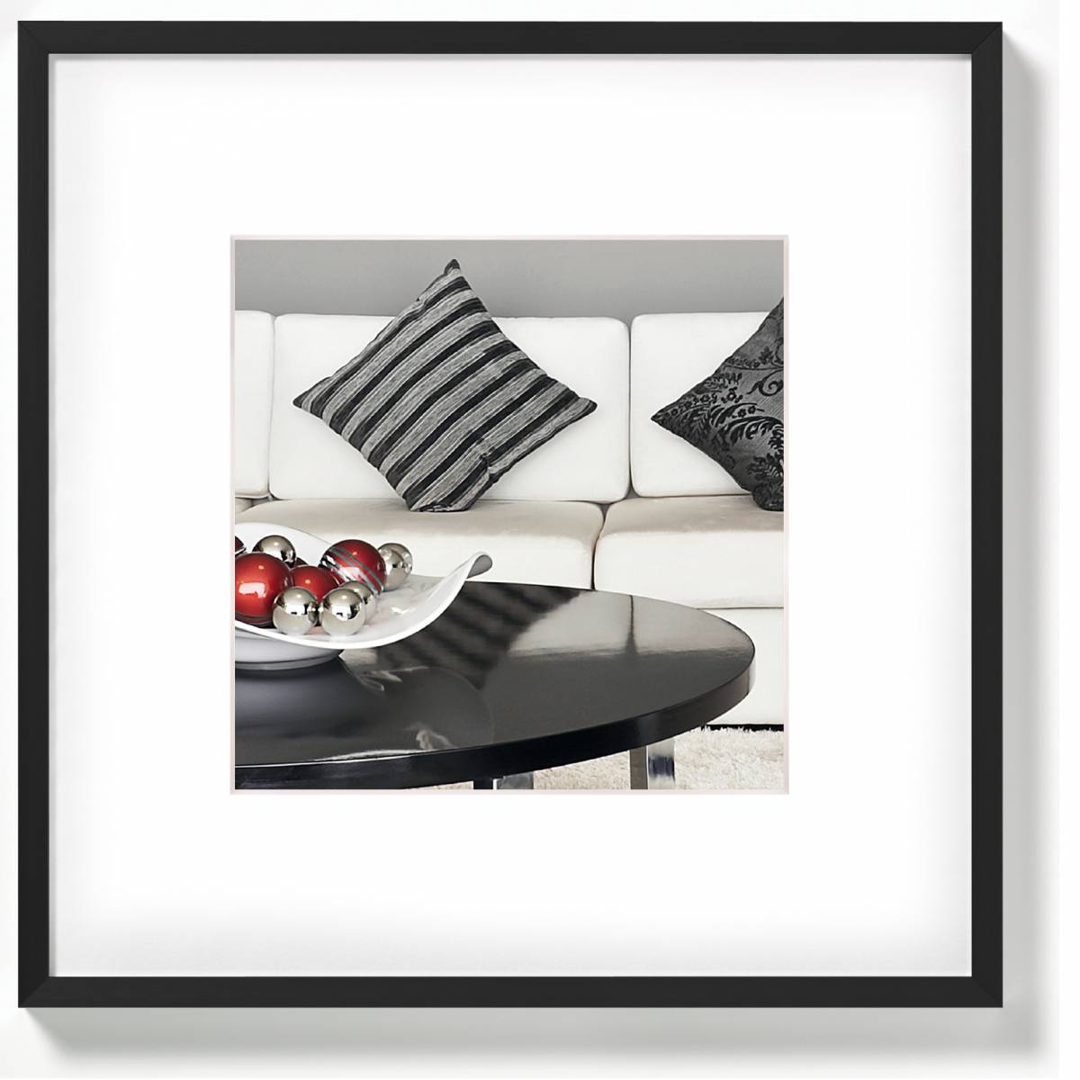 Perfil de bloque estrecho con una superficie cepillada mate totalmente anodizada en muchos formatos estándar, formatos cuadrados y cinco colores. - Los formatos cuadrados están equipados con un paspartú de corte en bisel real.