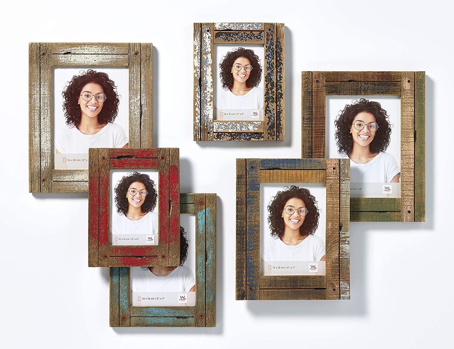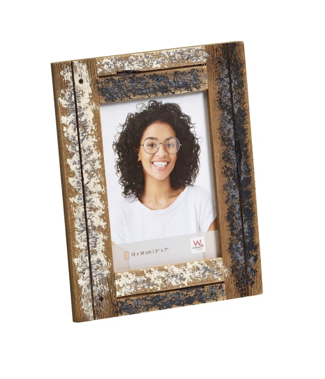 - Marco de retrato bicolor con un perfil ancho de madera rústica, shabby chic, para una foto en diferentes formatos.