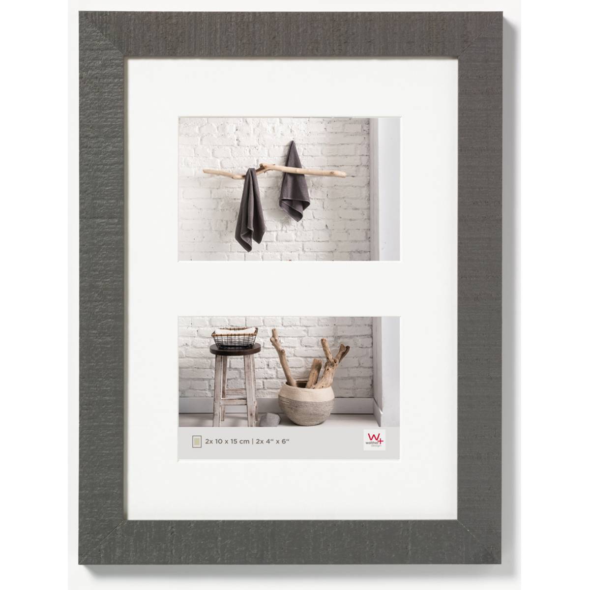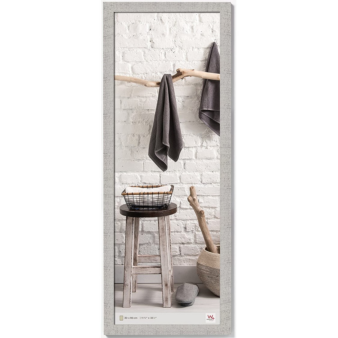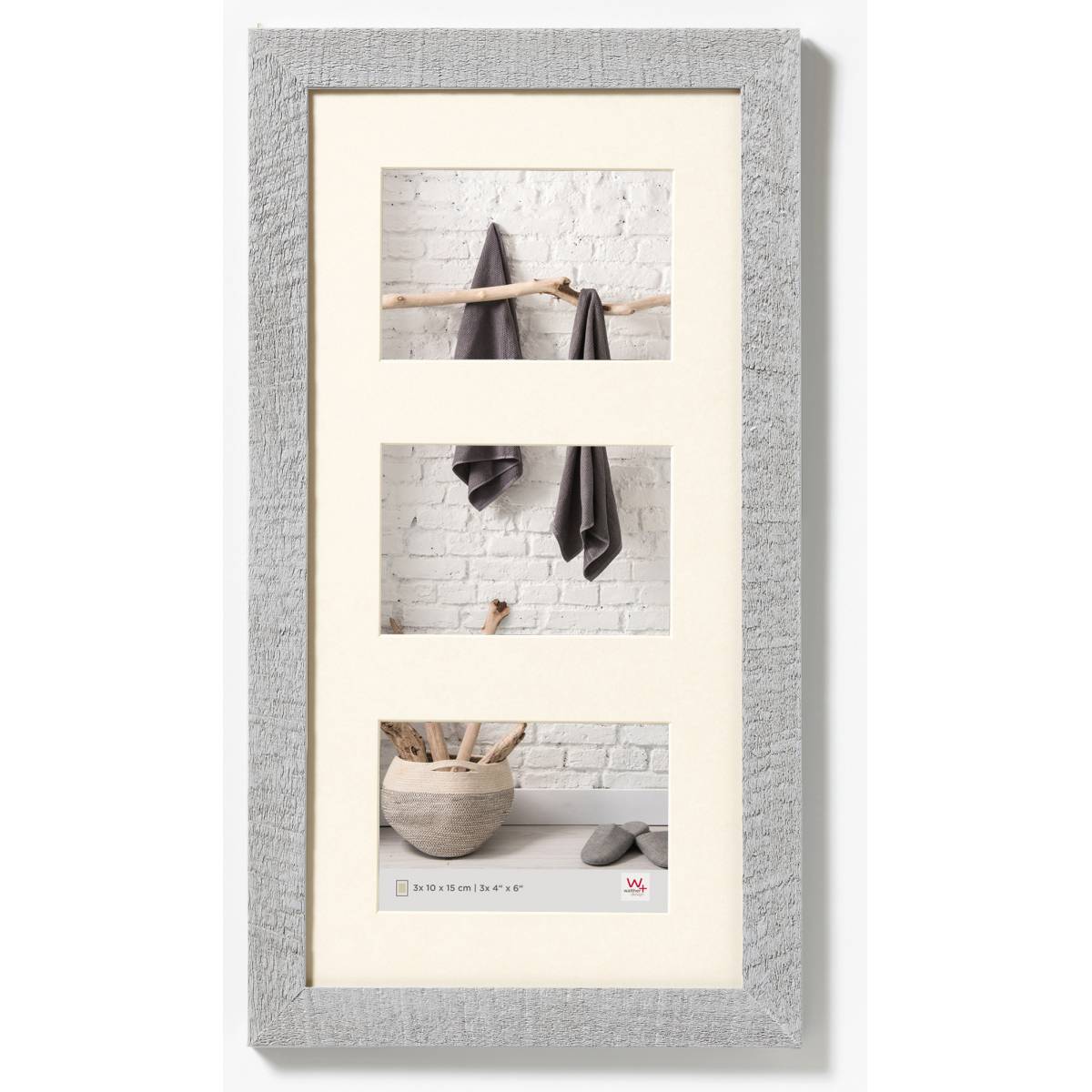 - Vidrio gris claro: vidrio transparente lavado Passepartout: estera de corte biselado, blanco Pared posterior: tablero duro y dos dispositivos de suspensión adicionales