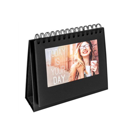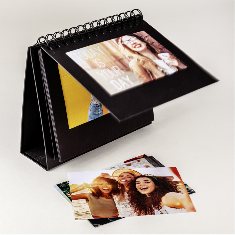 - Portafotos de cartón negro con encuadernación espiral.